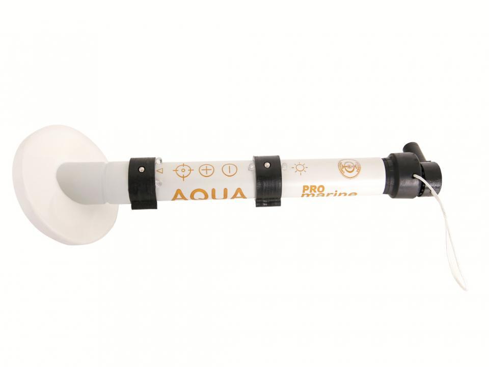 Магнитный стилус металлоискателя AQUAmarine закреплен шнуром  к крышке батарейного отсека, во избежание случайной утери. Данная опция позволяет использовать магнитный стилус для извлечения из грунта небольших магнитных объектов трудно различимых визуально или тактильно. Пользователь погружает стилус в выкопанный грунт и контактным методом рассеивает его стилусом, как только стилус приблизится к магнитному, он сразу его примагнитит. Это позволит сэкономить время на просеивании грунта.